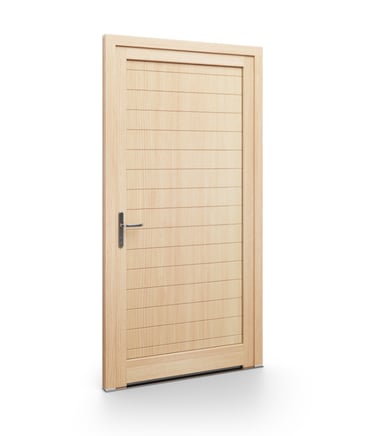 Panele WoodLine łączą naturalne piękno drewna z solidną konstrukcją i dobrą izolacją. Dostępne w trzech grubościach, wykończone trwałymi lakierami i opcjonalnymi nakładkami INOX lub czarnymi, stanowią eleganckie i praktyczne rozwiązanie dla drzwi.