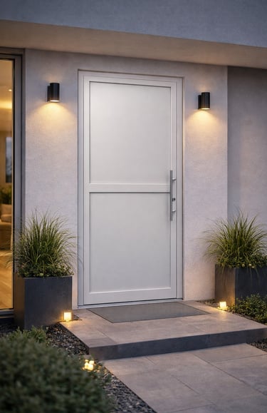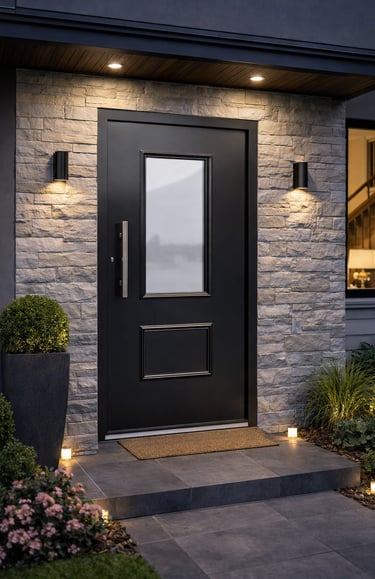 Panele EkoVitre to propozycja dla tych, którzy chcą, by ich wejście do domu było zarazem efektowne i solidne. Składają się z dwu warstw szkła VSG, z czego jedna płyta zdobiona jest przez delikatne piaskowanie — co daje efekt prywatności i dekoracyjnej elegancji.