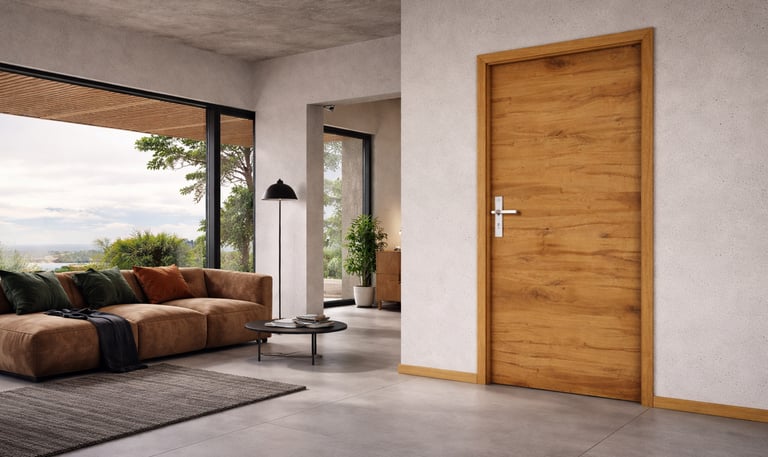 Doorsy-deuren onderscheiden zich door hun solide uitvoering in natuurlijk hout, wat het interieur warmte en een tijdloos karakter geeft. De houten constructie zorgt voor duurzaamheid, stabiliteit en een zeer goede geluidsisolatie, waardoor het dagelijks gebruikscomfort wordt verhoogd.