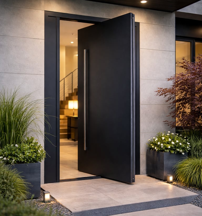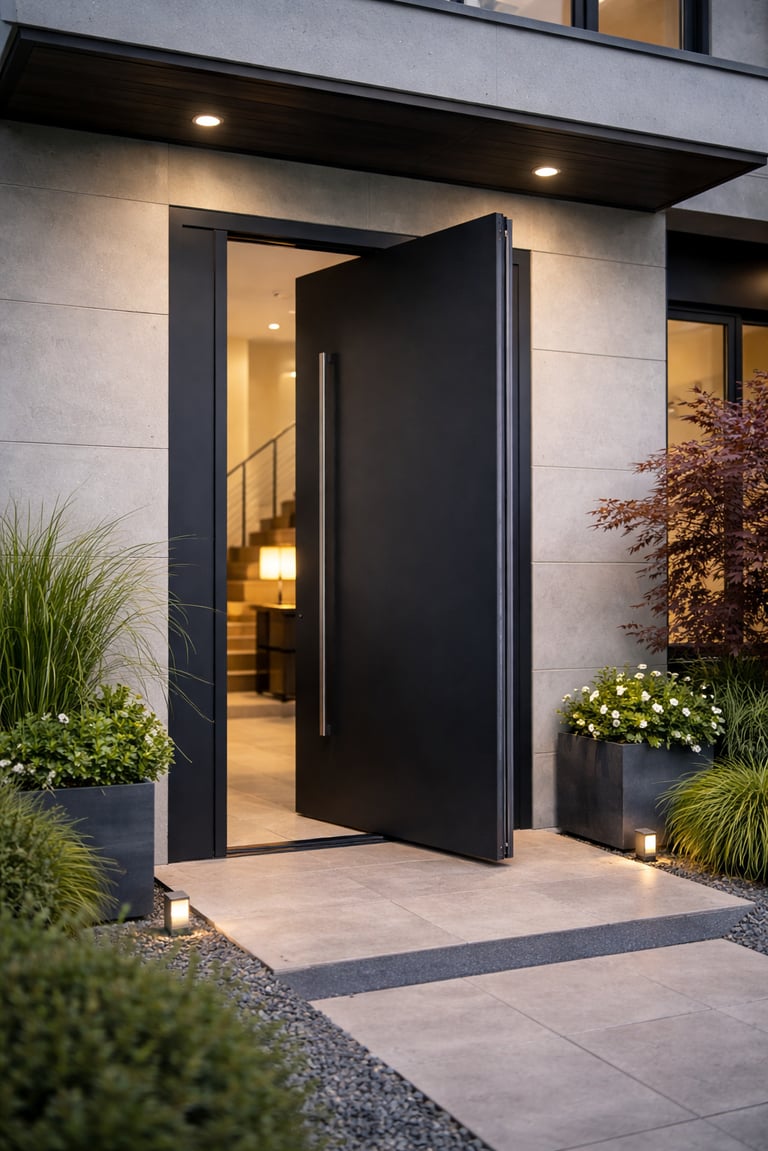 Pivot Line-panelen zijn moderne deurpanelen bestemd voor pivotsystemen, die minimalistisch design combineren met hoogwaardige afwerking. Ze bieden uitstekende thermische en akoestische isolatie en passen dankzij hun grote formaatmogelijkheden perfect bij indrukwekkende entrees.