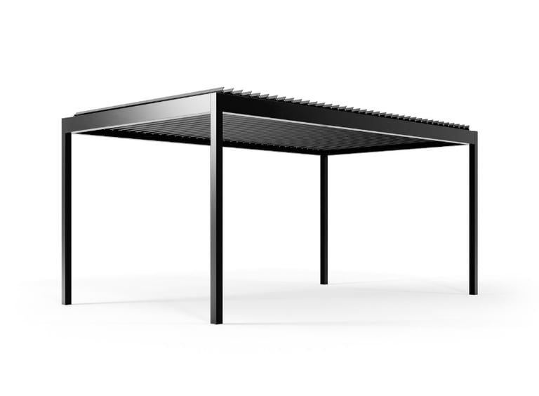 Pergola Nuun Eco to aluminiowe zadaszenie z regulowanymi lamelami, które umożliwiają kontrolę światła i cyrkulacji powietrza. Odporna na warunki pogodowe konstrukcja z ukrytym systemem odprowadzania wody gwarantuje trwałość i wygodę użytkowania. Możliwość dodania osłon bocznych, szklenia czy oświetlenia sprawia, że pergola staje się funkcjonalną strefą wypoczynku o każdej porze roku.