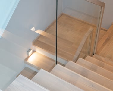 Schody z deski warstwowej to gotowy system z naturalnego drewna, który łączy trwałość z eleganckim wyglądem. Dzięki precyzyjnie dopasowanym elementom i szerokiej gamie kolorystycznej pozwalają stworzyć spójną aranżację ze schodami idealnie dopasowanymi do podłogi.